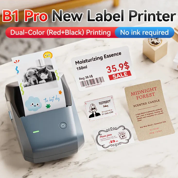 B1 Pro labelprinteren kan printe fotos samt i både rød og sort samtidig
